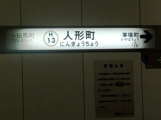 人形町駅駅名標