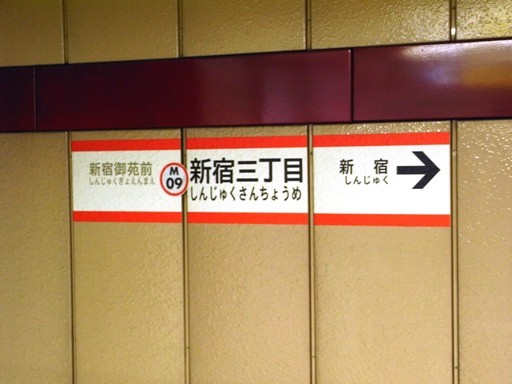 新宿三丁目駅駅名標