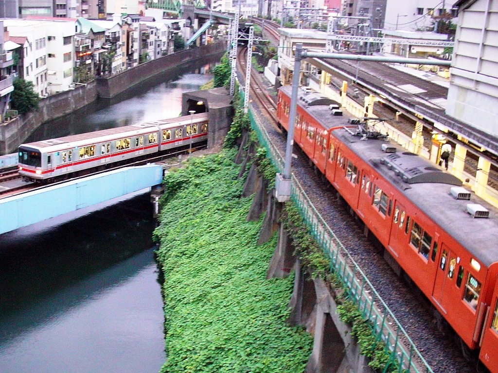 丸ノ内線と中央線列車(御茶ノ水駅)
