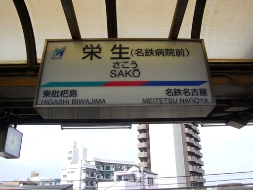 栄生(さこう)駅駅名標