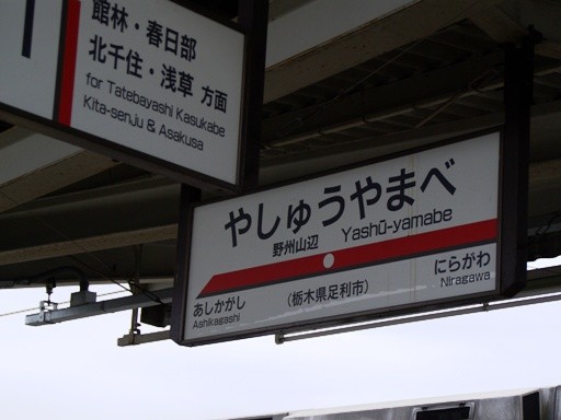 野州山辺市駅駅名標